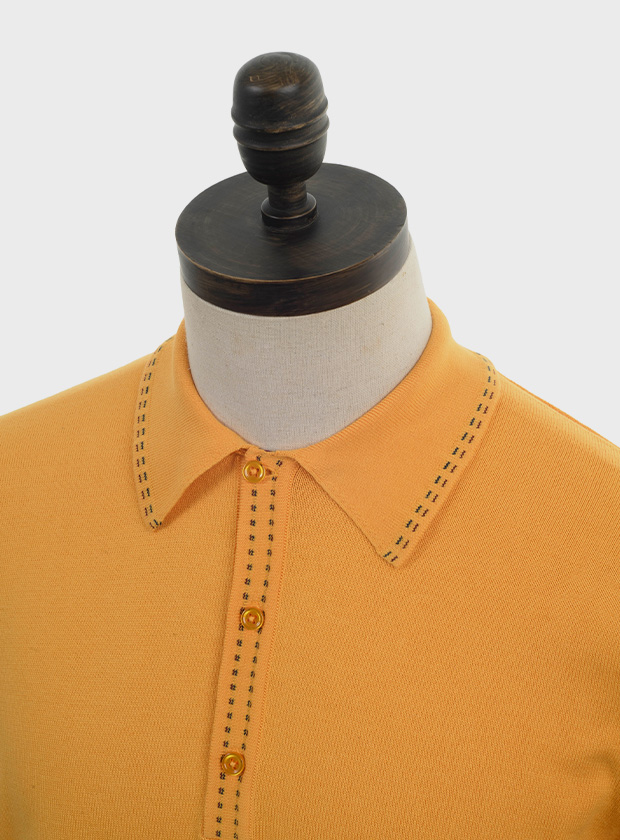 The Art Gallery Clothing style “MOORE’ is a classic mod knitted polo shirt with saddle stitching.