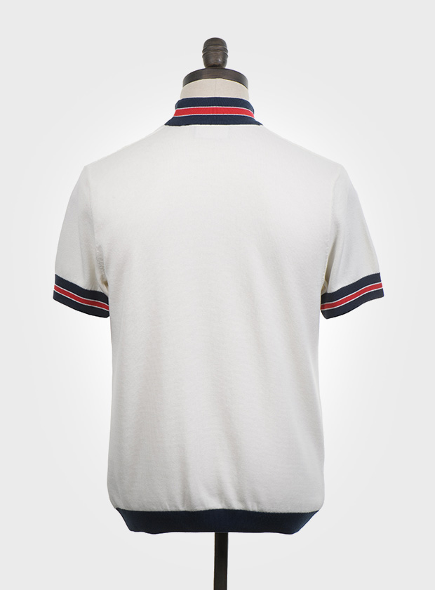 Pair this mod style knittedt. shirt with denim for a casual look or with suiting for a smarter sixties style.
