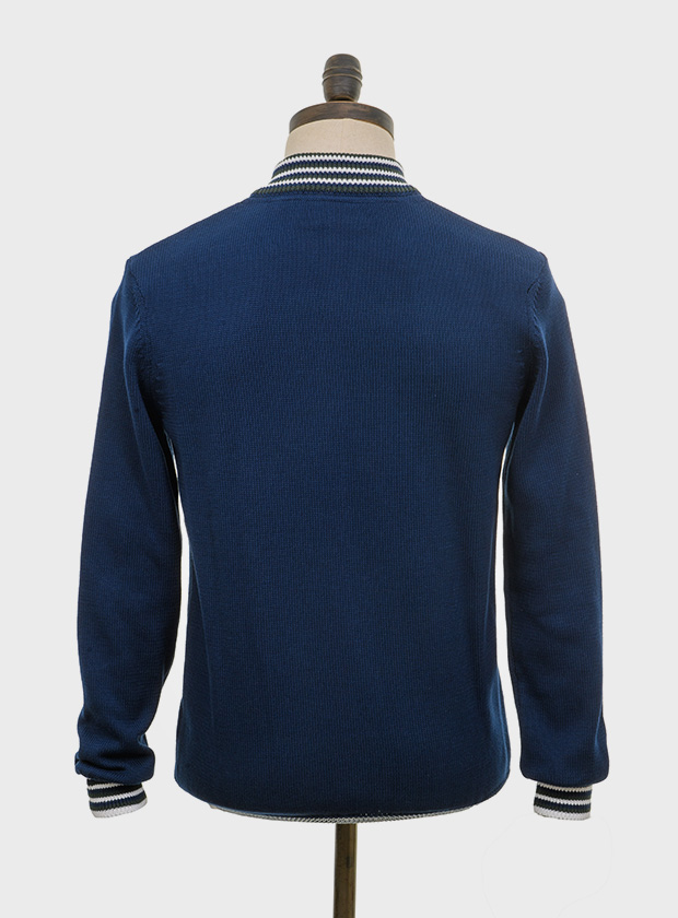 The ‘ROE’ funnel neck cardigan is a classic mod knit with a retro football training top look.